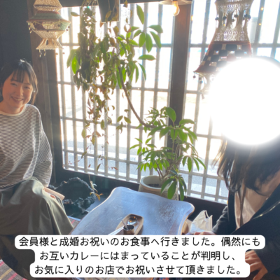 年齢的にもお相手が見つかりにくいのと過去の経験からマッチングアプリなどの利用は不安という事で、ご利用いただきました。